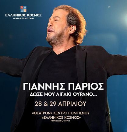 Ο Γιάννης Πάριος έρχεται για δύο μοναδικές συναυλίες την Παρασκευή 28 και το Σάββατο 29 Απριλίου. Ο κορυφαίος ερωτικός τραγουδιστής και συνθέτης θα μας χαρίσει δύο αξέχαστες βραδιές με τις μεγαλύτερες επιτυχίες του. Με την ιδιαίτερη χροιά της φωνή του και τις μοναδικές ερμηνείες του έχει καταφέρει να είναι χαραγμένος ανεξίτηλα στη συνείδηση του κοινού τόσο ο ίδιος ως καλλιτέχνης, όσο και τα τραγούδια που έχει ερμηνεύσει. Πάντα με μεγάλο σεβασμό και αφοσίωση σε αυτό που κάνει, κατάφερε να έχει μια συγκινητική απήχηση στον κόσμο όλα αυτά τα χρόνια.
