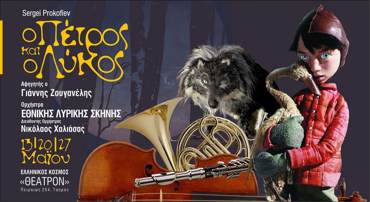 H εταιρεία θεατρικών παραγωγών ΜΕΘΕΞΙΣ παρουσιάζει το διασημότερο μουσικό παραμύθι όλων των εποχών «Ο Πέτρος και ο λύκος», του Σεργκέι Προκόφιεφ, με τον Χρήστο Τριπόδη, πέντε μουσικούς, δυο χορεύτριες και επτά μουσικά όργανα, στην αίθουσα «Ιφιγένεια», στο «ΘΕΑΤΡΟΝ» του Κέντρου Πολιτισμού «Ελληνικός Κόσμος».
