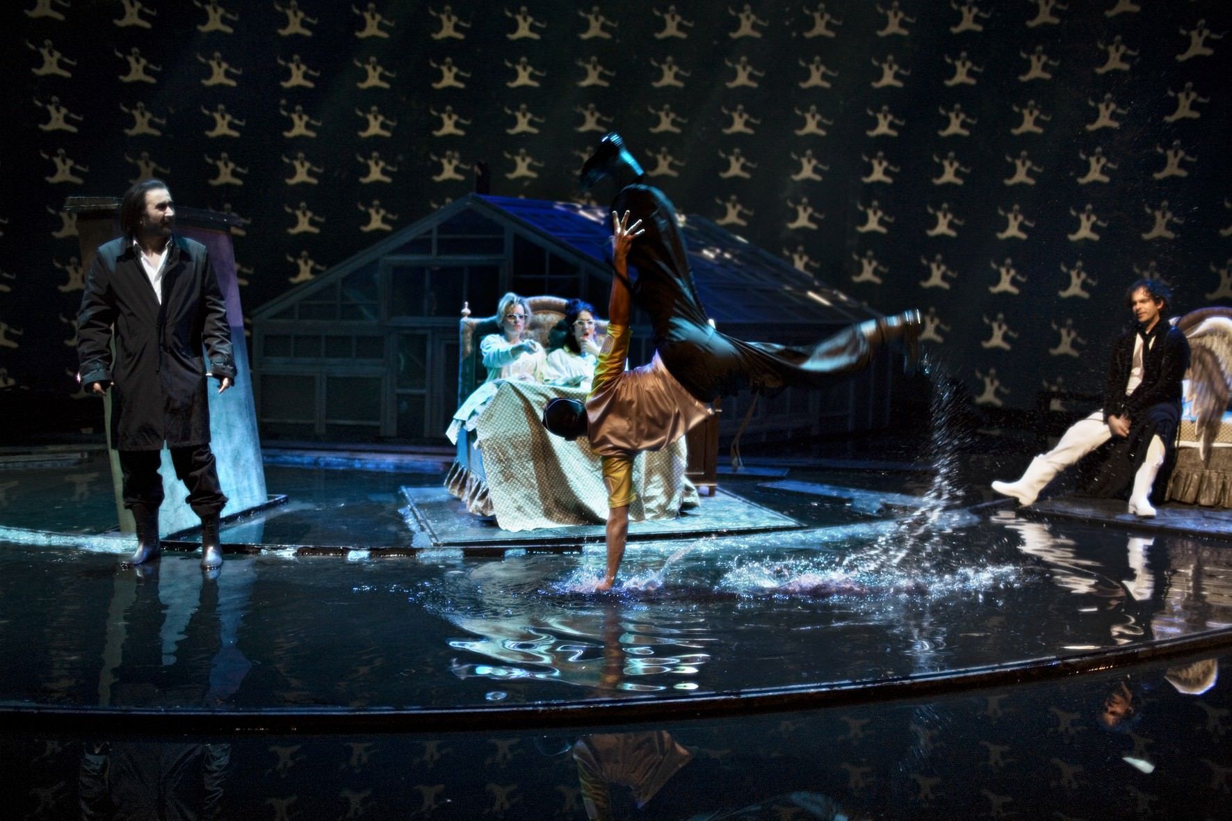 Οι φωτισμοί της Ελευθερίας Ντεκώ δημιουργούν την ατμόσφαιρα και αποδίδουν εκπληκτικά την αίσθηση που συνέλαβε ο συγγραφέας και σκηνοθέτης.